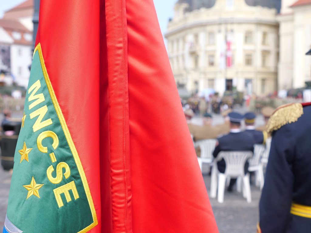 On 18 June, the official anniversary day of Headquarters Multinational Corps South-East was celebrated through a festive ceremony held in Piața Mare of Sibiu. The event brought together personnel of the unit, representatives of NATO’s Force Structure and of the Romanian Ministry of National Defence, military from the subordinate units and partner military structures, local and national officials, as well as members of the Sibiu community, all in a warm and festive atmosphere.