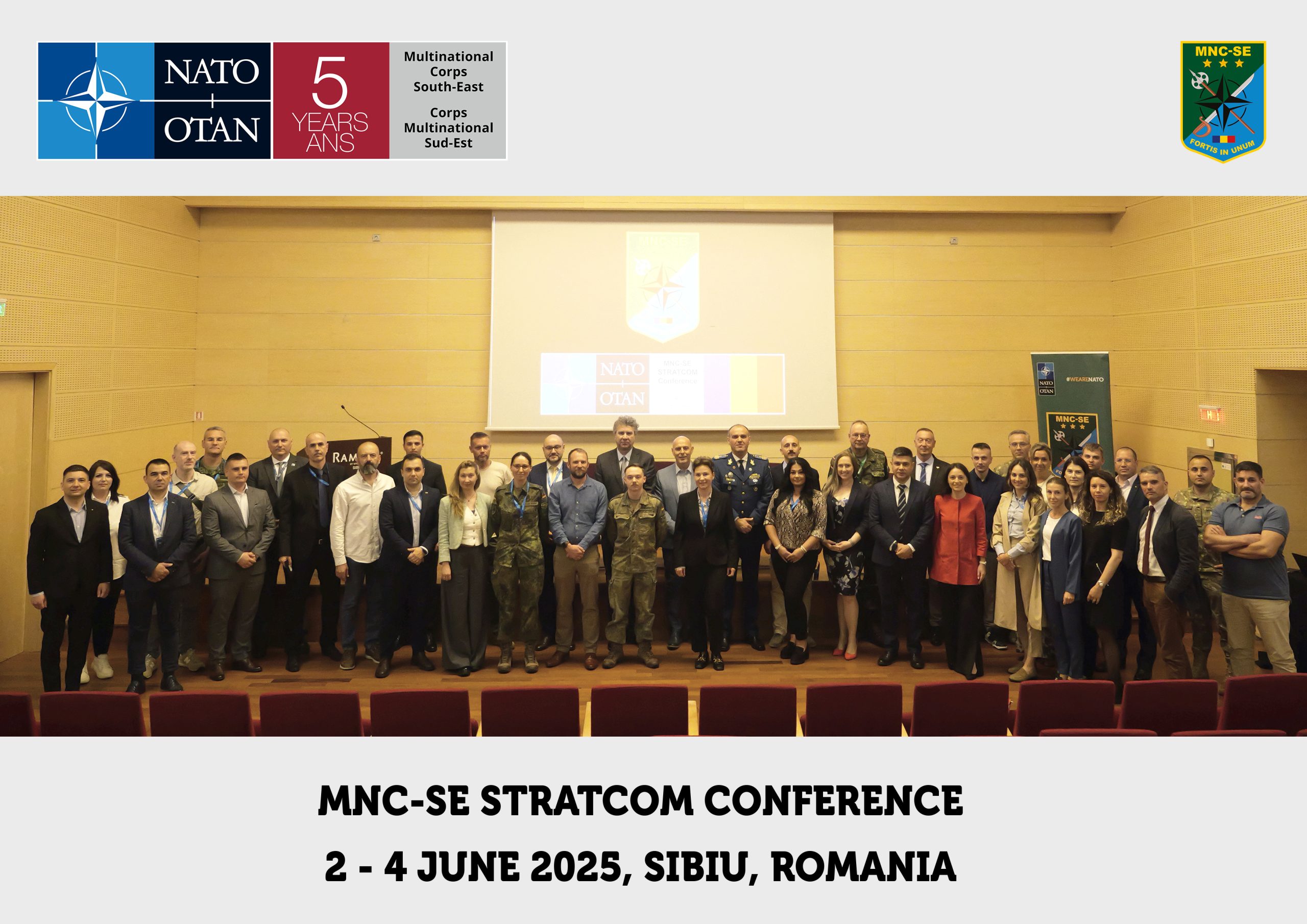 Headquarters Multinational Corps South-East (HQ MNC-SE) hosted the second edition of the Strategic Communication (StratCom) Conference in Sibiu from 2 to 4 June, with the participation of approximately 50 subject-matter experts from academia, NATO commands, and national entities.